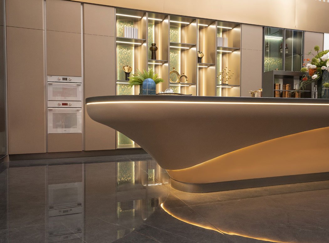 起源航海家斐迪南·麦哲伦,设计灵感源于船型曲线,岛台的流线型设计宛如一艘劈波斩浪的巨轮,寓意着勇往直前地迈向新时代。橱柜背板则采用了蚀刻工艺,描绘出波澜壮阔的航海版图。麦哲伦横渡太平洋、穿越美洲、抵达亚洲,这是人类历史上最艰辛的创举,没有任何其他成就可以超越甚至媲美麦哲伦的环球航行。 高端的不锈钢材质,高雅的香槟金与冷静的铁银灰,巧妙营造出奢华氛围。这不仅是对麦哲伦的伟大探险致敬,更是向生活中所有追求创新、敢于突破的航海者致敬。